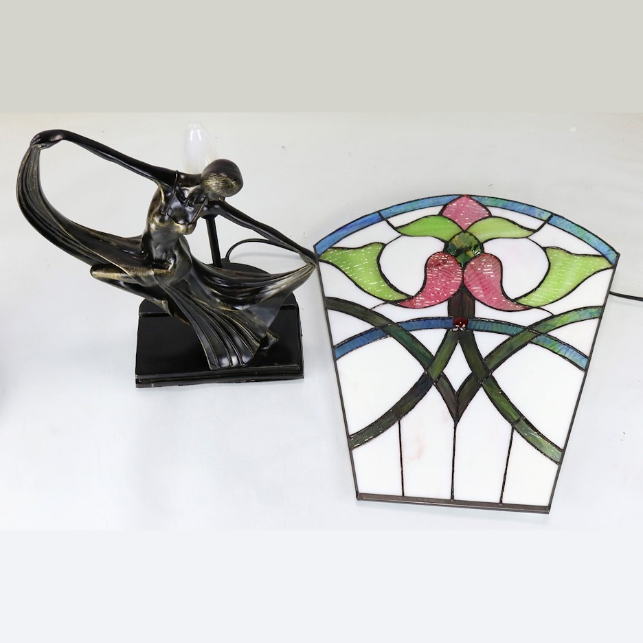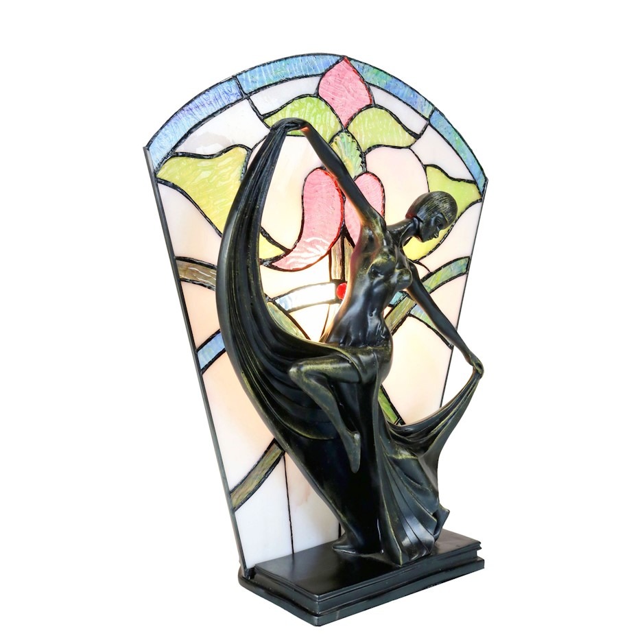 Art Deco Stained Glass Floral Table Lamp H40cm