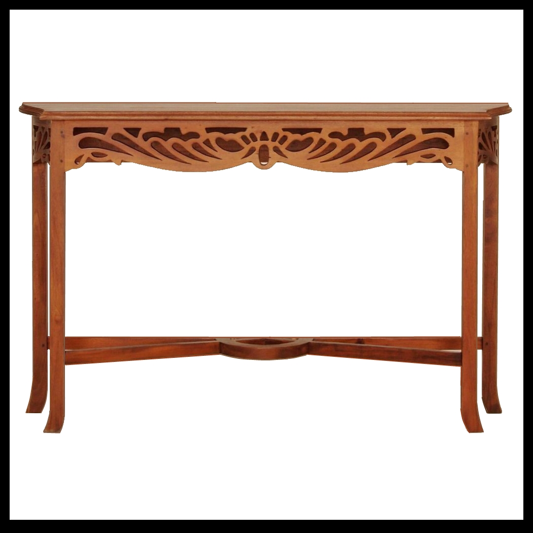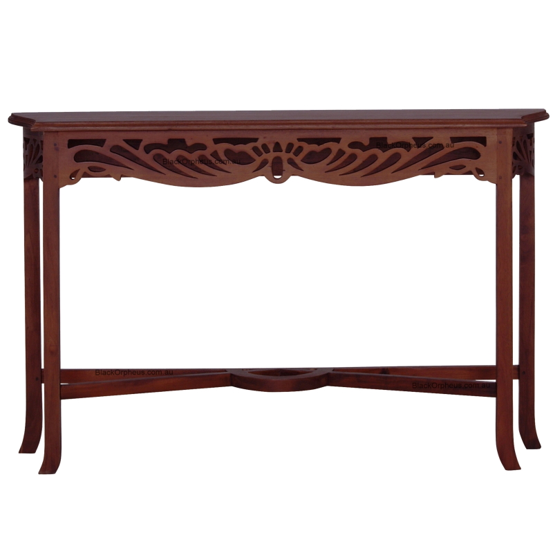 Console Table J Side Large with extensive fretwork, mildly rustic fine finish, Solid Plantation (Legal Government Certified) Mahogany Hardwood, Classic look place it in Hallways, Entrances, or as a Sofa table, very handy can even be used as a TV stand in bedroom… Hand made Quality Furniture
