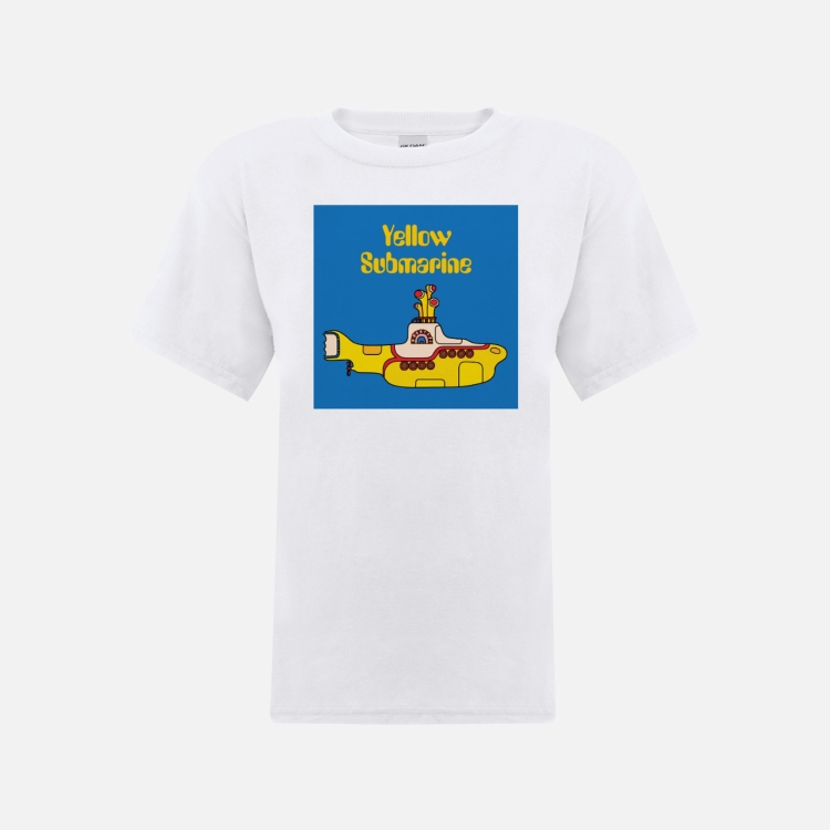 T-Shirt Yellow submarine depicting the Beatles, Bold, Bright coloured design, printed on a soft 100% Cotton, Unisex, Standard fitting T-shirt, fabulous gift for many occasions, T-Shirt yellow submarine.