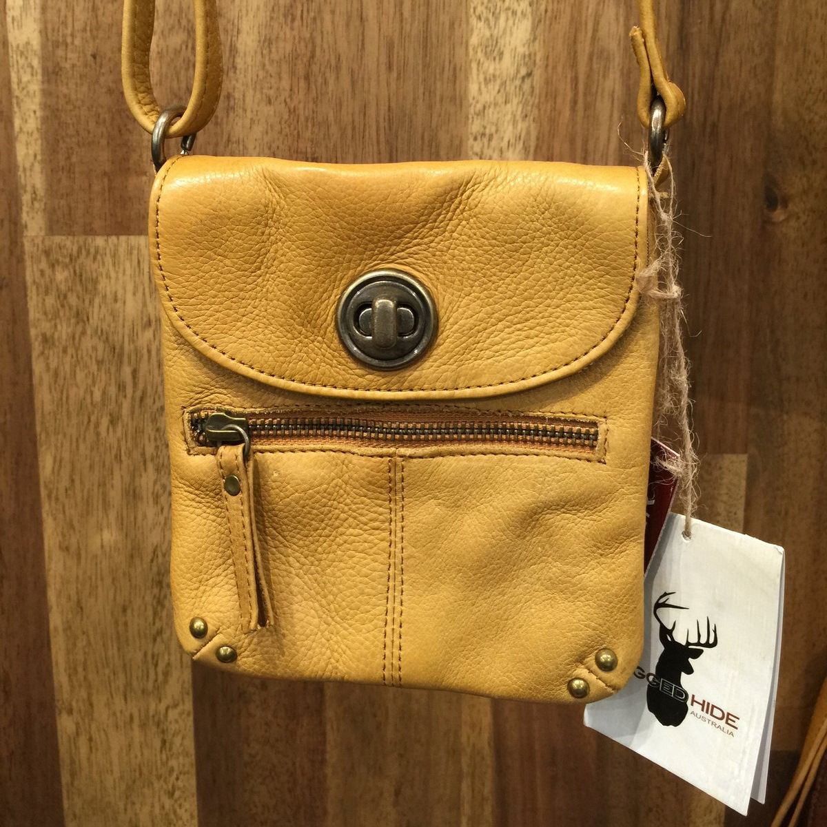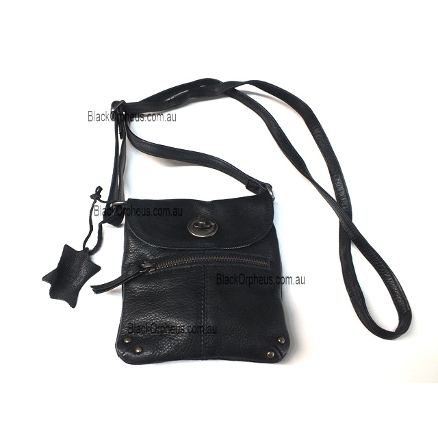 Fabulous, soft leather, small Sling bag. With Brass metal hardware. Flap and lock, external zip on the front, and internal zip too. Long strap