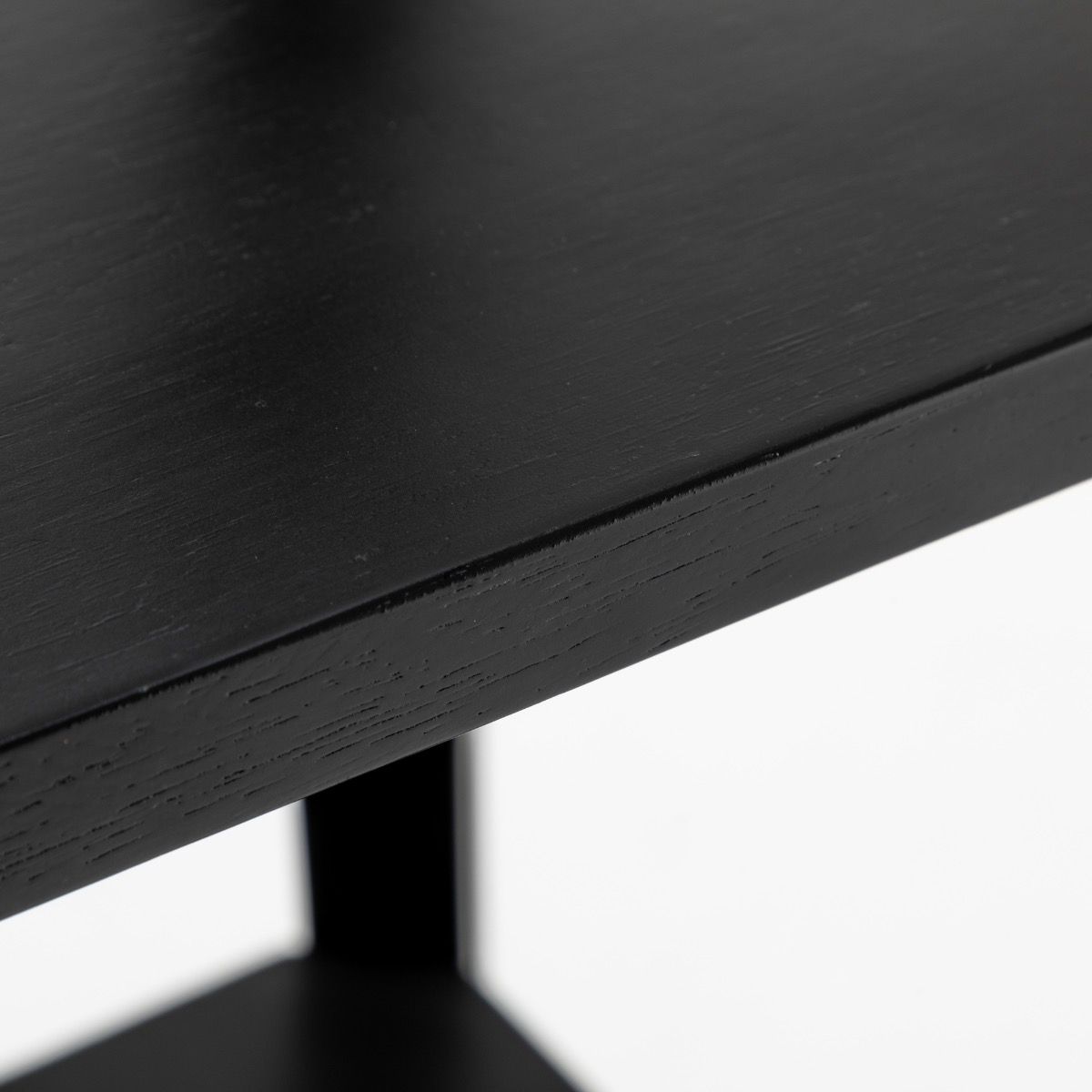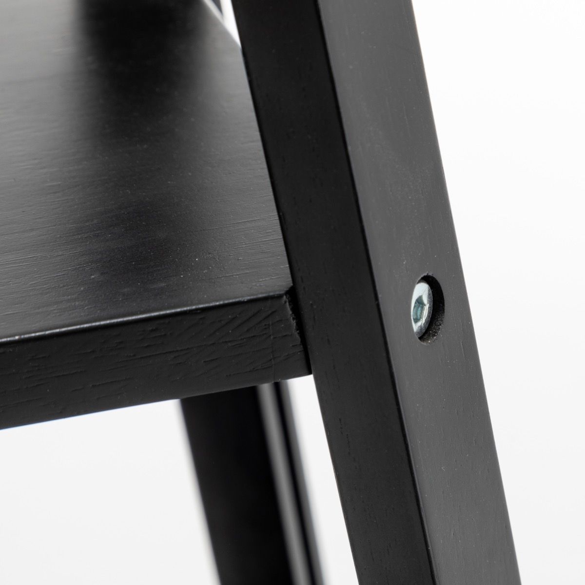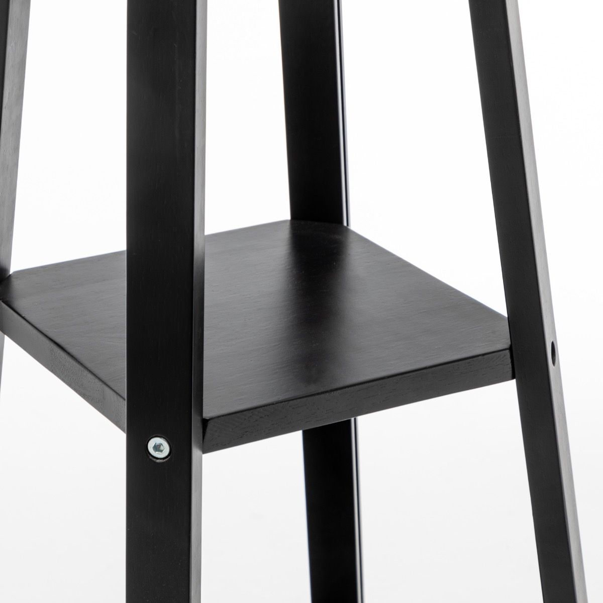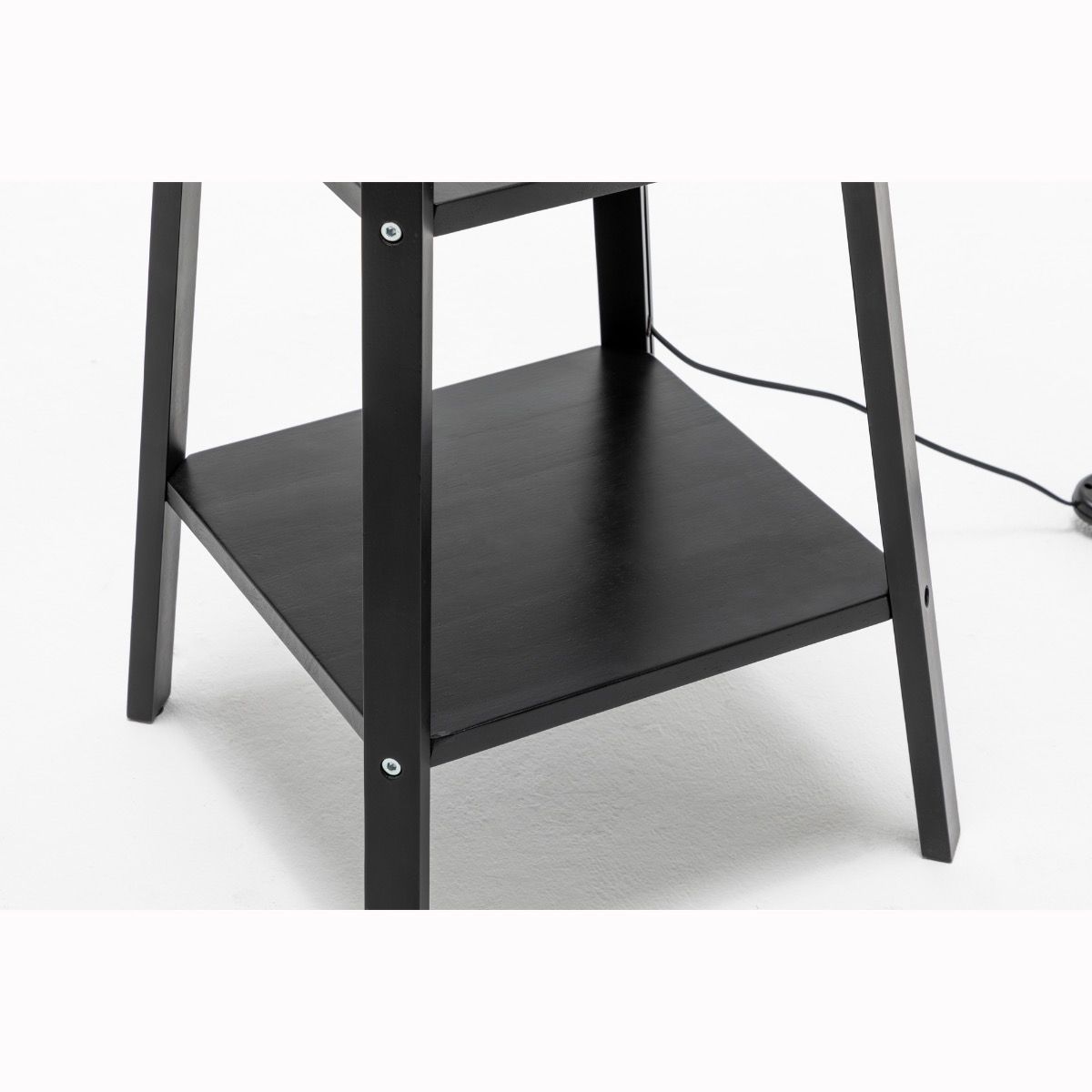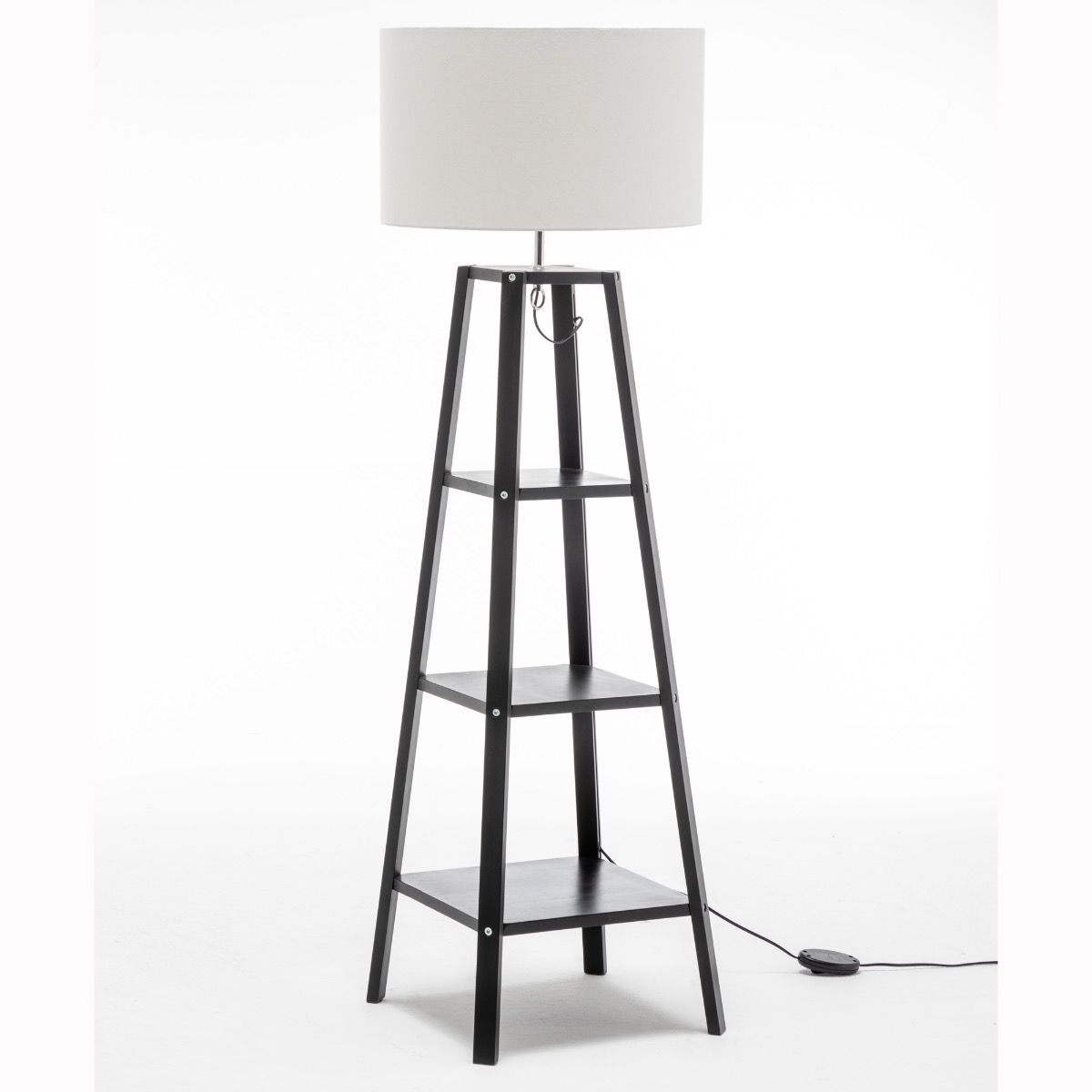 Matte Black Rubberwood Lamp with 3 Square Shelves and Off White Linen Shade