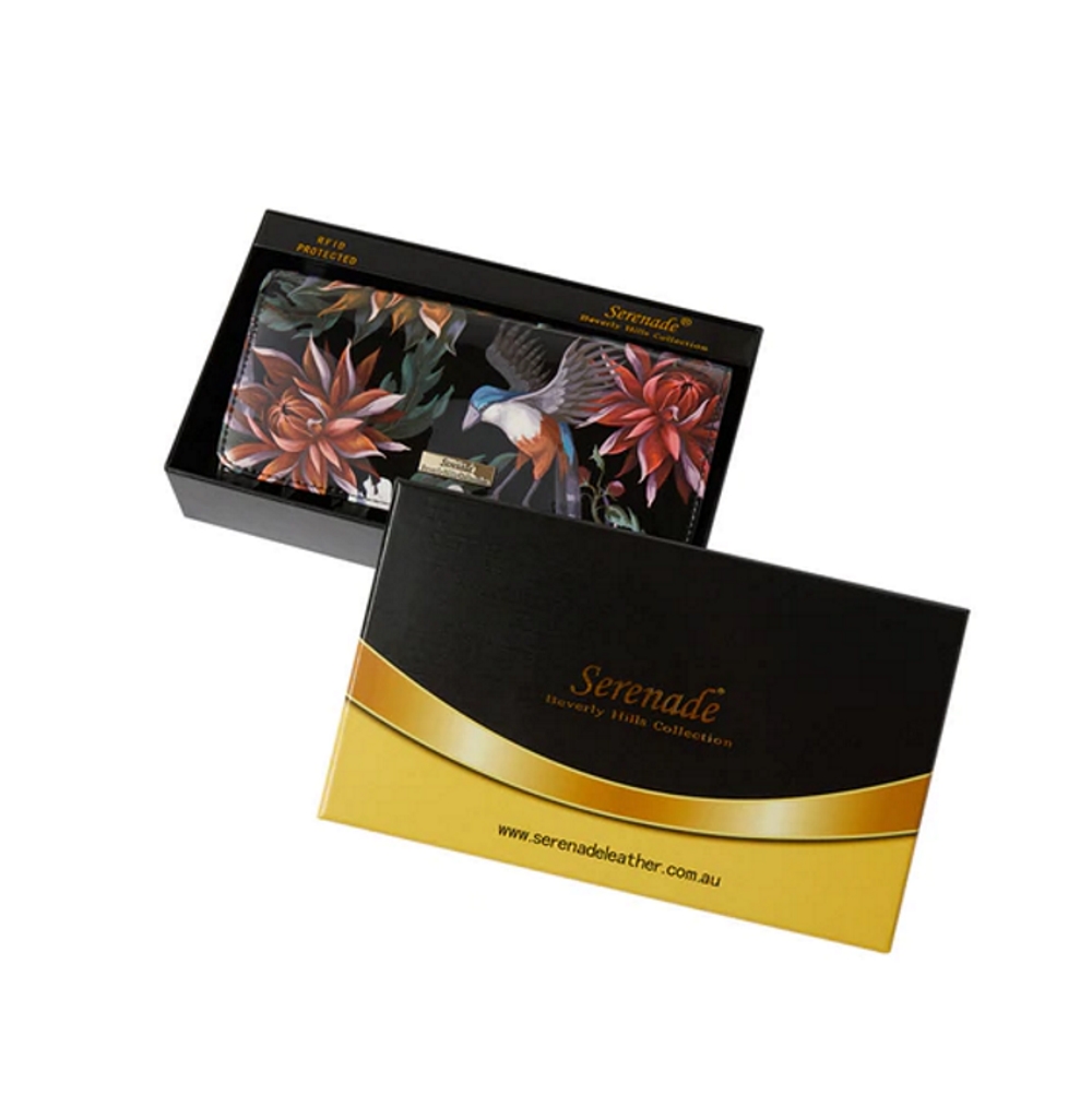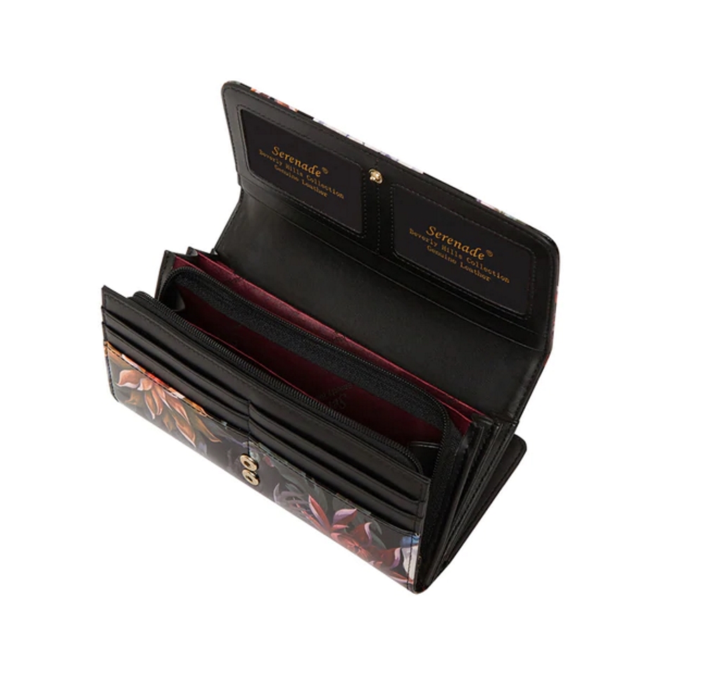 The Serenade Beverly Hills Collection Vintage Bird Patent Leather wallet has plenty of room for all your cards and essentials. Large enough to fit 20 cards, plus 2 window identification slots, is a must-have everyday wallet, Highly praised by many reviewers, the best price at BlackOrpheus.com.au for the serenade leather wallet