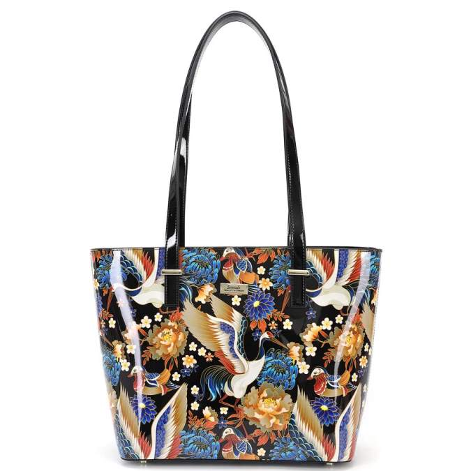 Serenade Beverly Hills Collection, Serenade Meiling Patent Leather tote bag, perfect for everyday. Crafted from premium leather with a patent finish. This bag opens easily and features a central zippered compartment as well as two magnetic snap closure compartments.