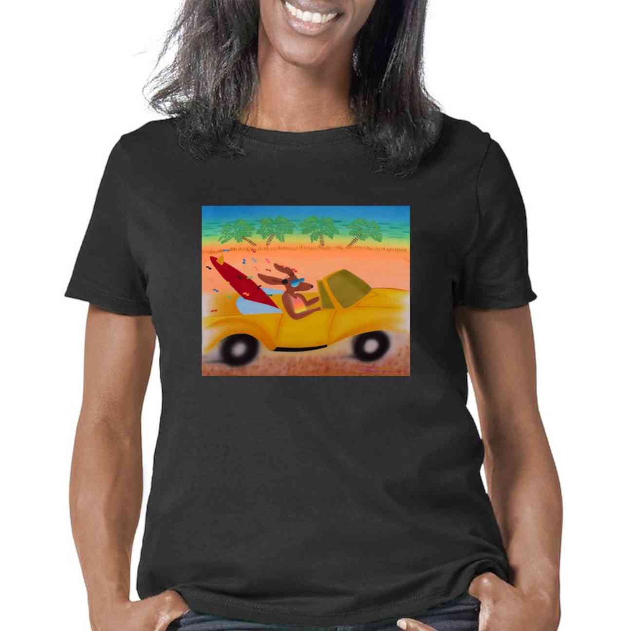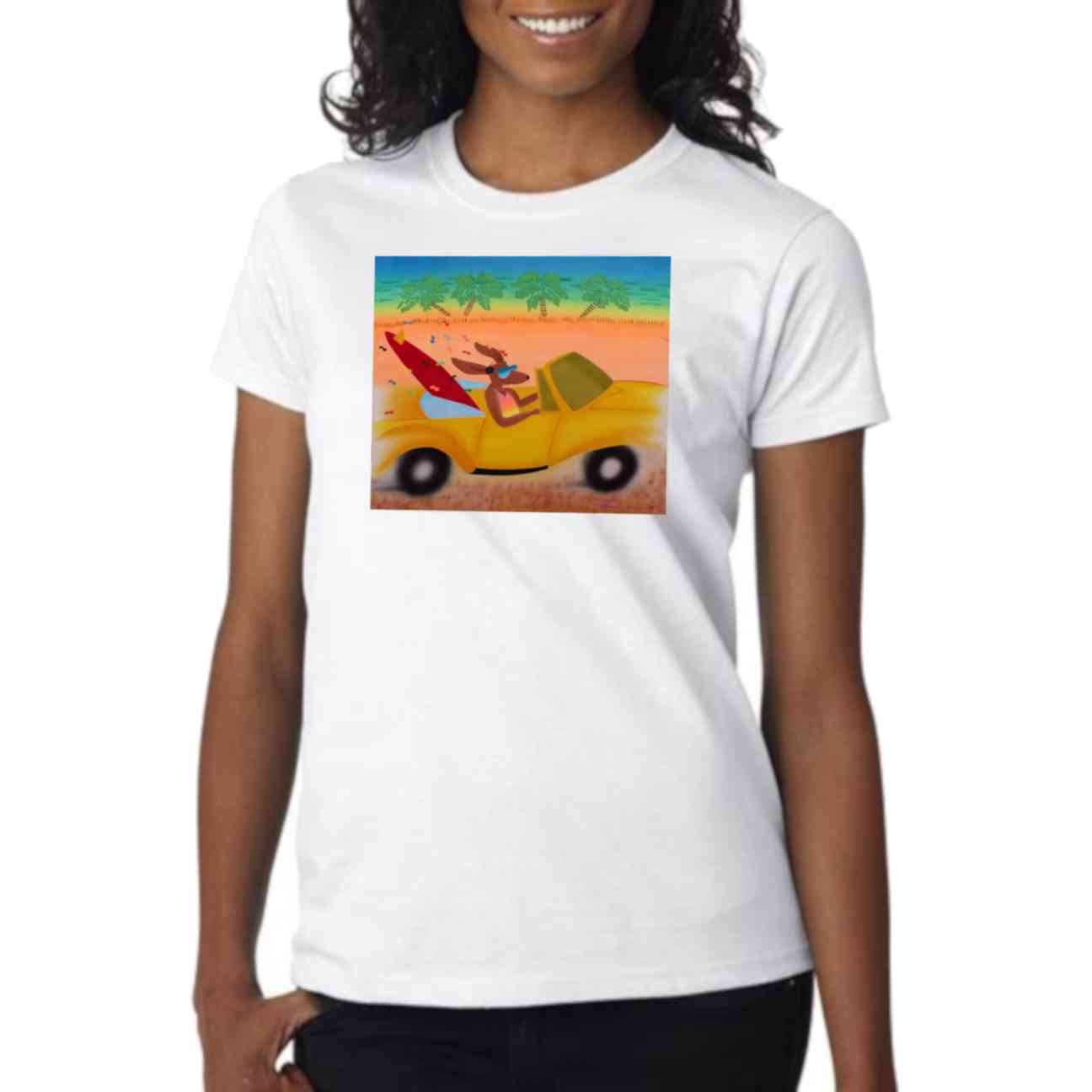 T-Shirt Bruce on a Clear Day by Jen Creative Design original depicting the Aussie spirit, bold Australian designs, printed on 100% cotton T-shirt Originally named “Bruce On a Clear Day” first of 5 designs for Olivia Newton John’s Koala Blue “Australiana Store” Los Angeles USA.